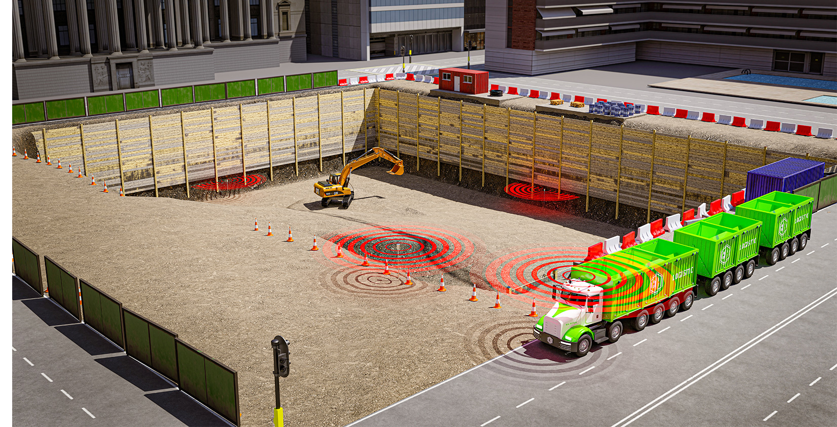A high-rise building excavation can create 10.000 to 15.000 tons of CO2. The use of electric dump trucks and electric excavators can reduce the CO2 to zero, and save money.