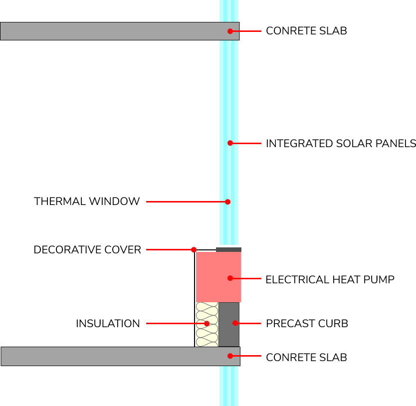 Electrical heat pumps offer better climate control for individual rooms, reduces loss of energy (from chiller to the individual unit). DC current can take advantage of the electricity being generated by the solar panels in the window to reduce energy loss.