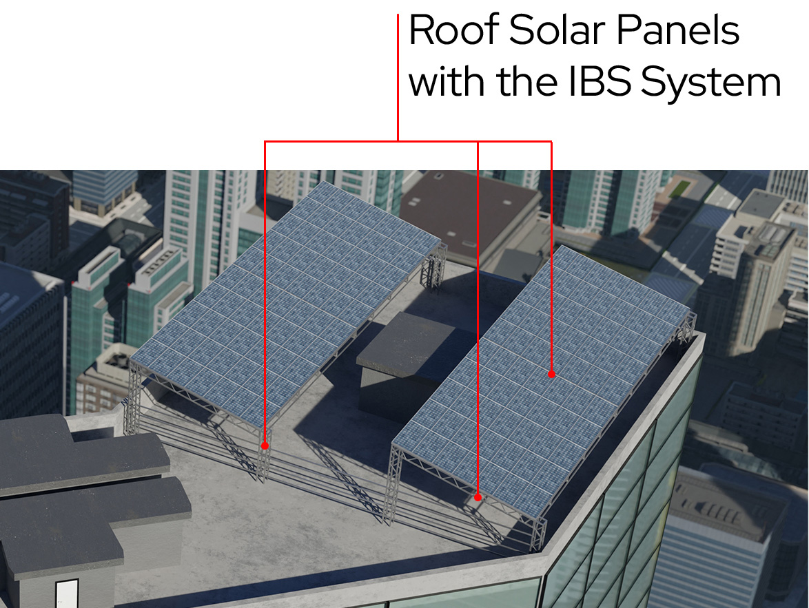 Roof solar panels with the IBS System offer advantages over a regular solar array. The solar green roof, will be similar to glass greenhouse, create electricity and grow food. Absorb the sun keeping the roof cooler in summer months while using any residual heat escaping through the roof to warm the greenhouse during the winter.