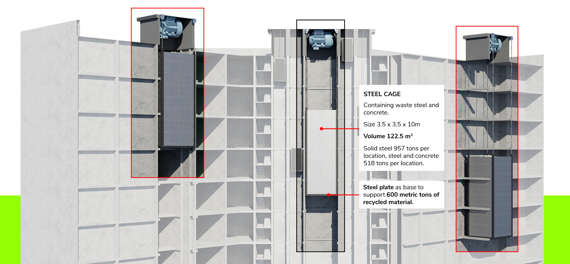 The In Situ Hollow Core structure can reduce the volume of concrete by 50% or more, reducing both the cost of the building and CO2.